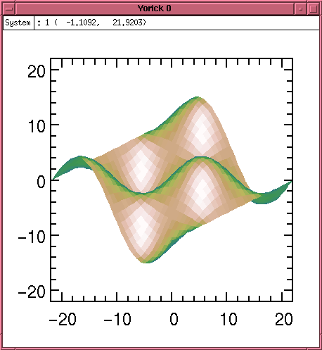 #include "plwf.i" orient3 x = span(-pi,pi,32)(,-:1:32) y = transpose(x) fma plwf, sin(x)*cos(y)